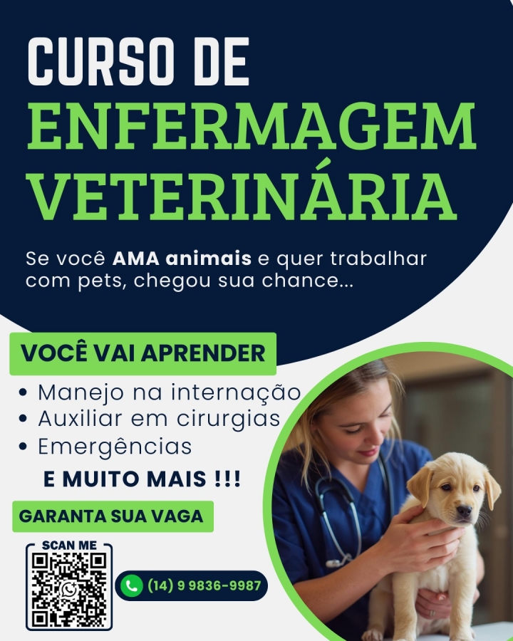 A CLINVET anunciou a abertura do curso de Enfermagem Veterinária, voltado a pessoas que desejam trabalhar com animais e atuar no apoio direto à rotina clínica veterinária.