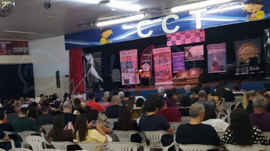 Cerca de 400 pessoas prestigiaram, na noite de sexta-feira (24), a apresentação da comédia “Quase 50 Tons de Cinza”, realizada no Clube dos Comerciários, em Tupã. O espetáculo, escrito e produzido pelo ator Vítor Branco, conquistou o público com uma abordagem leve e bem-humorada sobre os desafios e situações do ambiente corporativo contemporâneo.