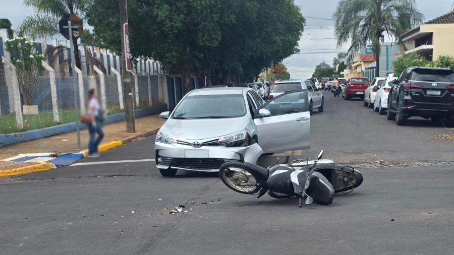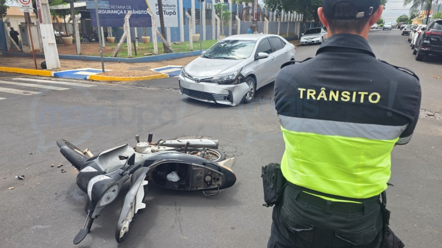 Na manhã desta quinta-feira (30) a condutora de uma Honda Bis trafegava pela Avenida Tapuias, no sentido da Rua Nhambiquaras para a Rua Caingangs, quando no cruzamento com a Rua Botocudos teve sua trajetória interceptada por um veículo Corola que tentava cruzar a Avenida.