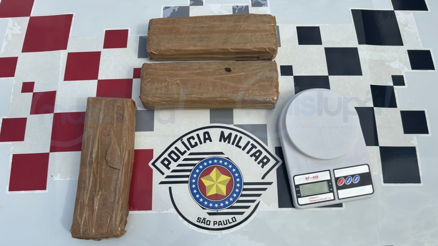 Assim que o carro parou, a equipe policial realizou busca pessoal nos dois ocupantes, que não portavam nada ilícito. No entanto, ao vistoriar o interior do veículo e localizaram, sob o banco do motorista, três tijolos de maconha, somando aproximadamente 2,040 kg, além de uma balança e R$ 656 em cédulas.