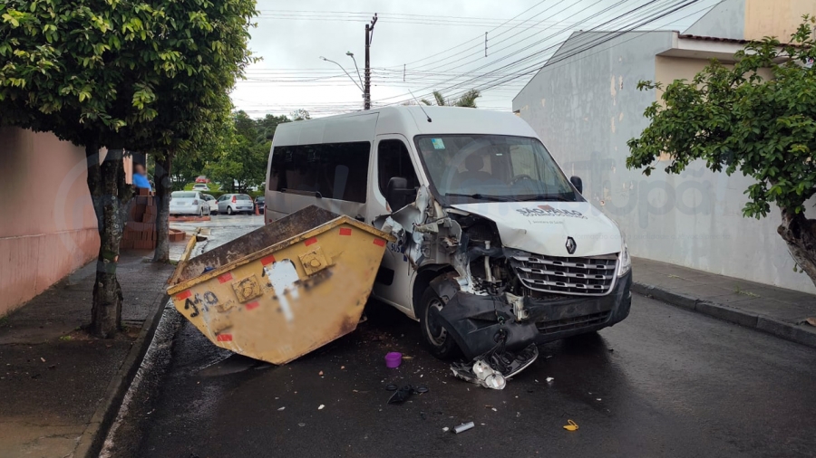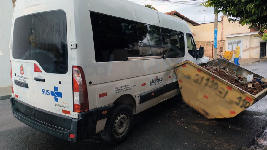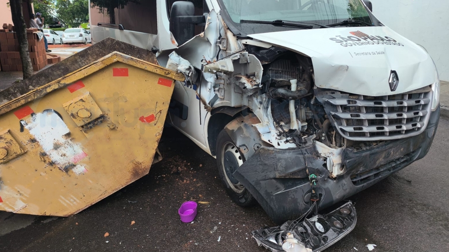 No início da tarde desta segunda-feira (15), o condutor de uma Van, da cidade de Sagres, ao sair do estacionamento da Santa Casa de Tupã, perdeu controle da direção e chocou-se violentamente contra uma caçamba na Rua Afonso Ponce.