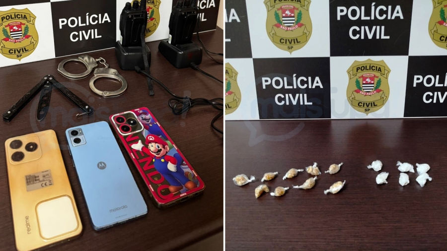 Com ele, foram apreendidas porções de cocaína e crack, além de dinheiro em espécie, aparelhos celulares, rádios comunicadores e outros objetos comumente utilizados na prática do narcotráfico, indicando estrutura voltada à mercancia de entorpecentes.