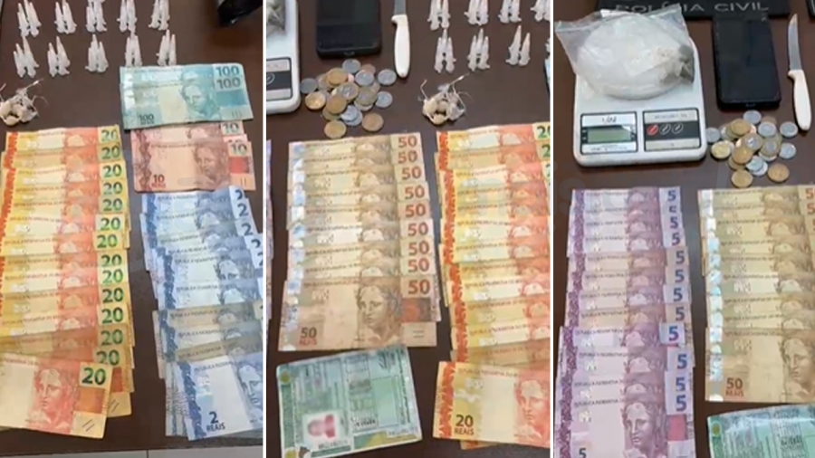 Durante as buscas, os policiais localizaram porções de cocaína, crack e maconha, já fracionadas e prontas para a venda, além de uma balança de precisão, dinheiro em espécie, câmeras de monitoramento instaladas para vigiar a movimentação externa e outros objetos comumente utilizados na atividade de tráfico. Parte da droga estava acondicionada em uma pochete arremessada no quintal de um dos imóveis.