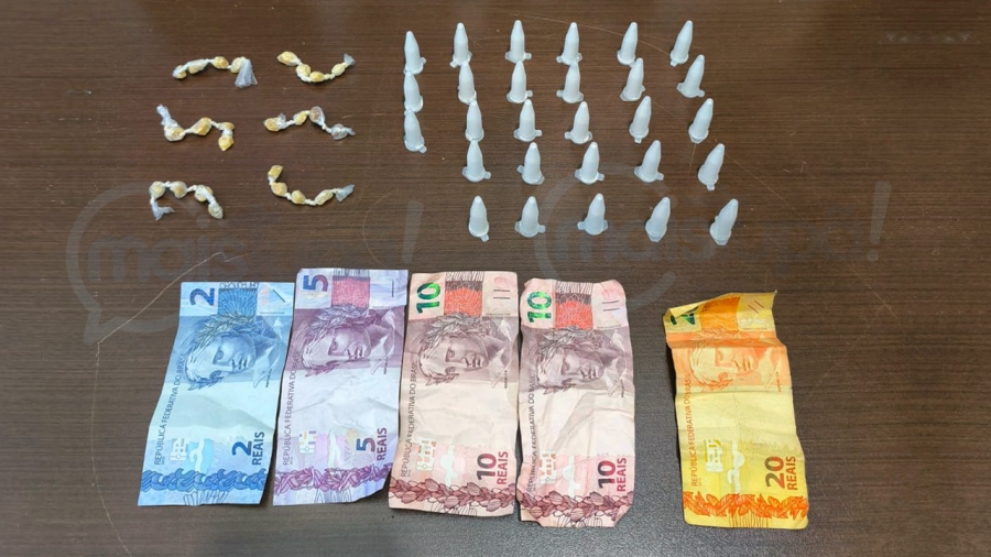 Após a abordagem, em revista pessoal, foram localizados no short do indivíduo R$ 47,00 em dinheiro, além de 28 porções de cocaína e 24 porções de crack. Questionado, ele assumiu a posse dos entorpecentes e afirmou que realizava a comercialização no local.
