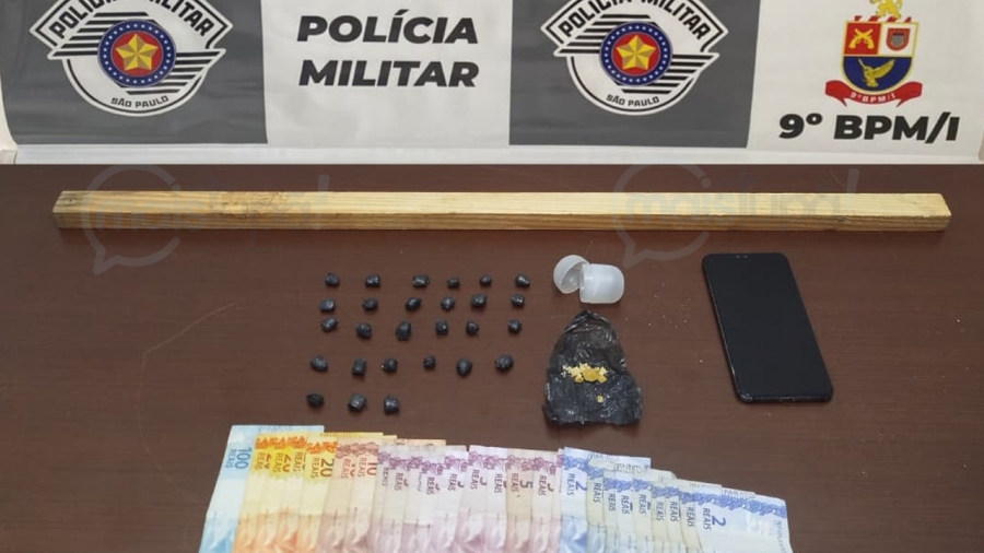 Na busca pessoal, os policiais localizaram 27 porções de crack e R$ 268,00 em dinheiro, distribuídos em notas fracionadas, quantia que, segundo a corporação, é característica da comercialização de drogas.