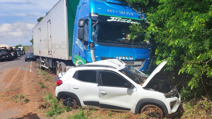 Na manhã desta quinta-feira uma colisão foi registrada na estrada vicinal que liga Iacri a SP-425, Rodovia Assis Chateaubriand. Por motivos a serem esclarecidos um veículo Kwid foi atingido por uma carreta, tipo baú.