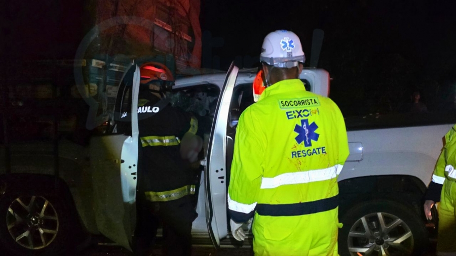Devido a violência do impacto, três ocupantes da picape ficaram retidos nas ferragens, outras duas vítimas conseguiram sair do veículo.