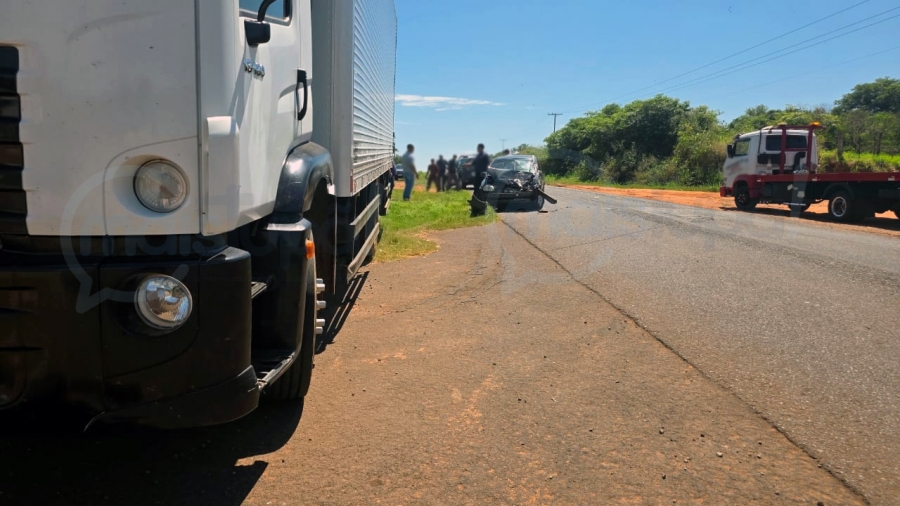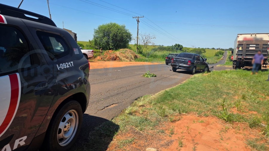 Na manhã desta quarta-feira (4), um acidente de trânsito foi registrado na estrada vicinal que liga Iacri a Bastos. O condutor de um veículo Corsa seguia pela via quando teve a trajetória interceptada por um caminhão baú que tentava atravessar a pista.