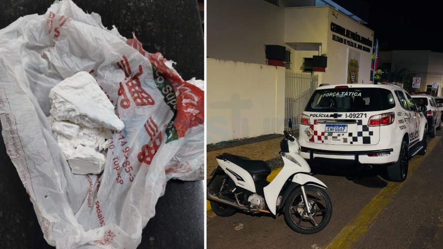A abordagem foi realizada poucos metros adiante. Durante a revista pessoal, os policiais localizaram apenas R$ 70 em dinheiro, porém, ao vistoriarem o compartimento da motocicleta, encontraram três porções de cocaína.