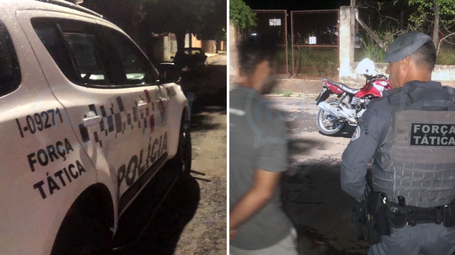 Durante patrulhamento tático com foco na prevenção de crimes, a equipe da Força Tática suspeitou da atitude de dois indivíduos que estavam parados ao lado de uma motocicleta, sob uma árvore em local com baixa iluminação. Ao notar a aproximação da viatura, um deles tentou se esconder, o que motivou a abordagem.
