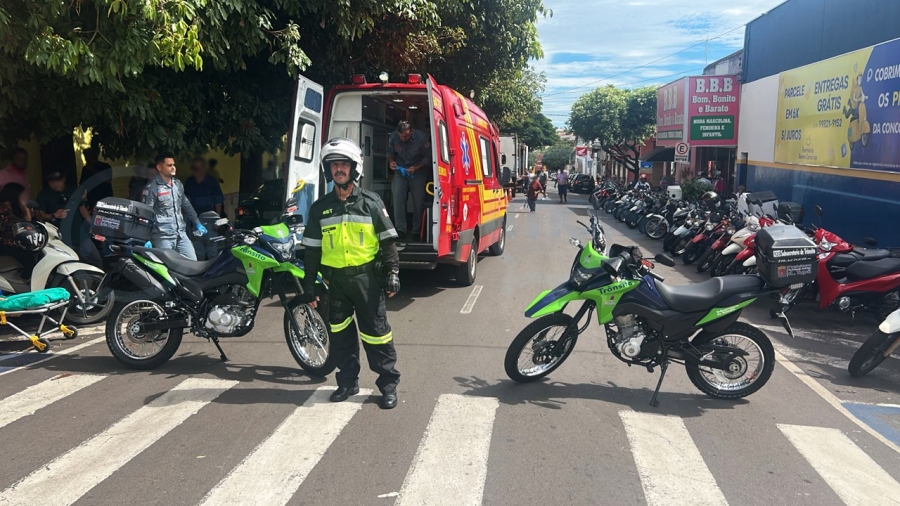 Na manhã desta quarta-feira (8), um motociclista ficou ferido em um acidente no cruzamento entre a Rua Carijós e a Avenida Tamoios, no centro de Tupã.