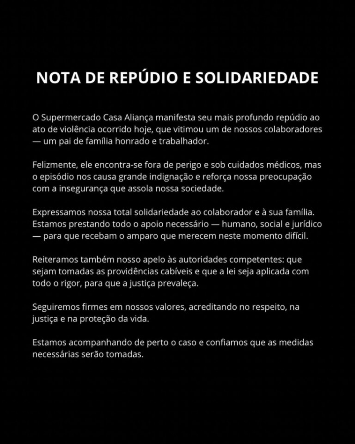 Em suas redes sociais, o estabelecimento emitiu uma nota de repúdio.