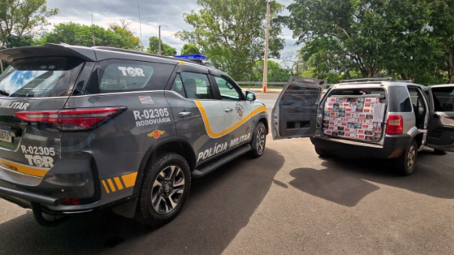 Os policiais abordaram um Ford EcoSport que seguia de Quintana para Oriente, ocupado apenas pelo condutor. Durante a vistoria no veículo, foram localizados diversos pacotes de cigarros de origem estrangeira, da marca Eight, distribuídos no assoalho dianteiro, banco traseiro e porta-malas.