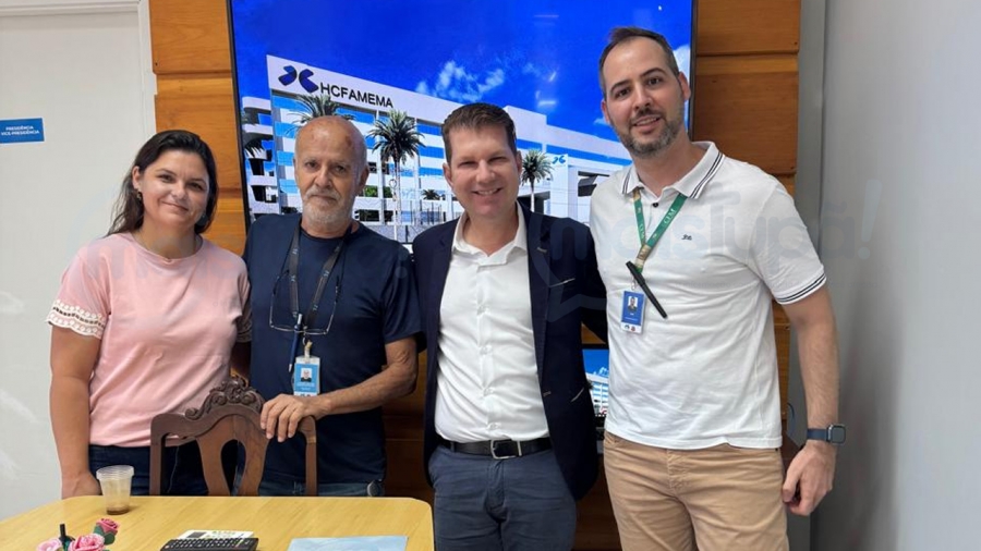 O prefeito de Quintana, Fernando Itapuã, esteve na Superintendência do HC/FAMEMA, em Marília, acompanhado da diretora municipal de Saúde, Andreia Pereira, para tratar do fortalecimento dos atendimentos prestados à população do município.