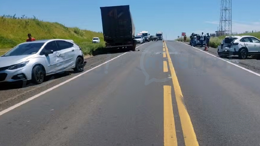Engavetamento na BR-153 envolve cinco veículos e deixa duas pessoas gravemente feridas em Marília