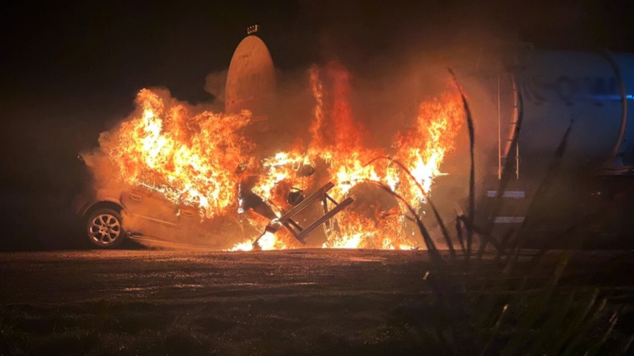 Com o impacto, o carro pegou fogo e as chamas se alastraram para parte do semirreboque. O Corpo de Bombeiros foi acionado, controlou o incêndio e retirou o corpo da vítima, já sem vida e carbonizado.