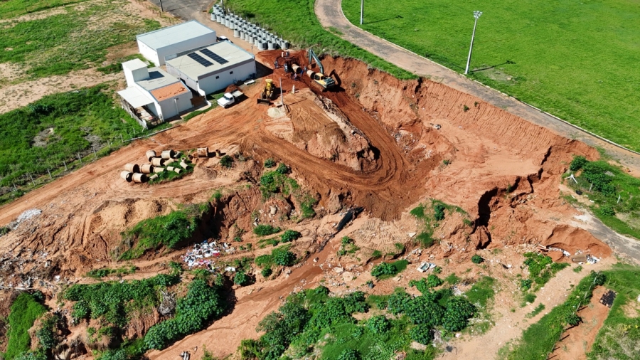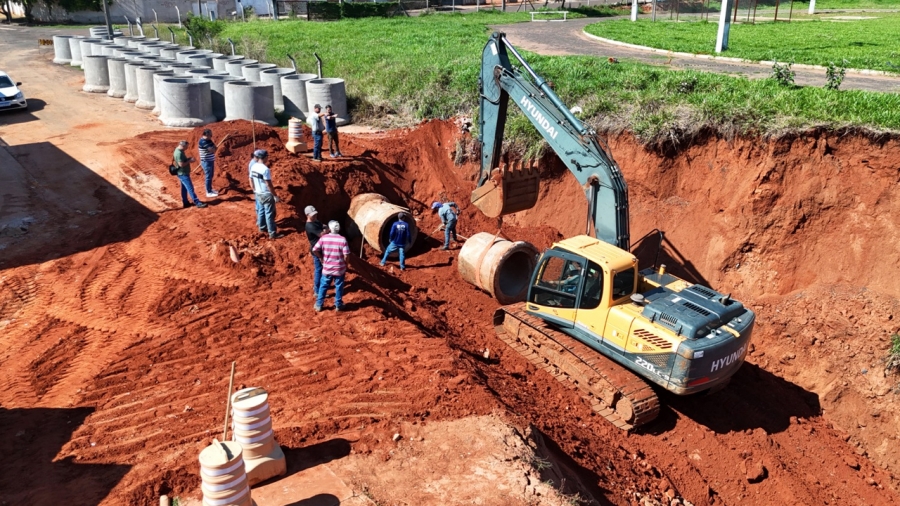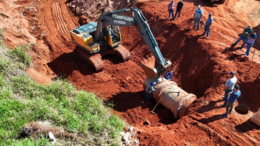 A obra é executada com mão de obra, material e equipamento da Prefeitura. A previsão é de que as linhas principais, formadas com tubulação de 150 centímetros de diâmetro, seja instalada nesta semana. Feita a ligação da linha, é possível aterrar um trecho da área erodida.