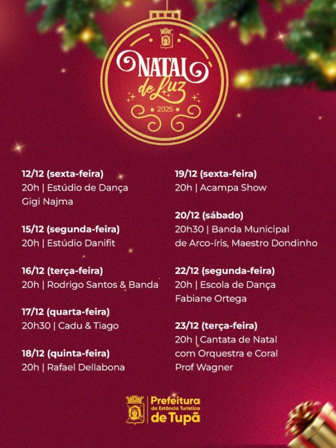 A decoração natalina vai ser marcada por atrações inéditas, muito brilho e um toque de artesanato que, combinados, devem criar um clima único, resgatando a tradição das festividades natalinas em Tupã. “O objetivo é trazer este clima para todos os tupãenses, mas também atrair visitantes da região e, com isso, incrementar o turismo”, complementou o prefeito.